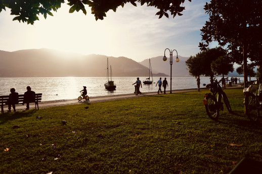 by nature and the mountains. The lake-front is worth discovering by walking past ancient